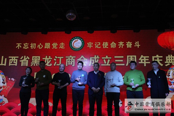 优秀新晋商宋庆华(山西省黑龙江商会执行会长兼副监事长)宣读了山西省黑龙剑商会2017表彰决定,共表彰龙商模范奖1名、特别奉献奖2名、热心商会奖12名、政治进步奖8名、优秀龙商奖12名、热心公益奖12名、先进会员奖12名、关心支持奖12名、关心支持奖16名、积极参与奖16名、奉献家乡奖、高级顾问奖4名、法律援助奖5名、员工能手奖1名。
