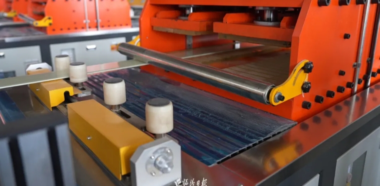 在生产车间,随着技术人员输入参数、指令并按下开关,高性能拉挤板材的所有生产环节全部自动进行,工作人员只需要查看设备运行情况。在设备的缓慢运行中,原材料通过浸润、成型、固化、收卷等步骤,被制作成标准形状、厚度的板材。