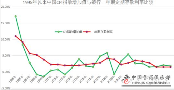 由上图可知,按照中国官方公布的CPI,一半时间里都比央行一年期定期存款利率高,这说明中国过去20多年的时间,很多时候就是以存款人来补贴银行。