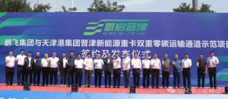 次月,鹏飞集团与天津港集团在孝义成功举行晋津新能源重卡双重零碳运输通道示范项目签约仪式。该项目全程采用氢燃料电池重卡,采用“点对点”“重去重回”运输方式。