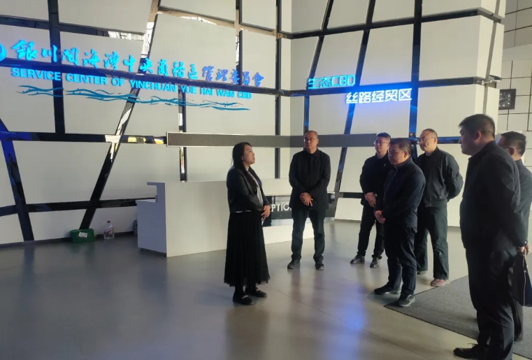 当日下午,考察团前往银川阅海湾中央商务区管委会。管委会副主任郭瑞桐在一层规划展示馆详细为大家讲解介绍了园区规划建设情况并一同观看了特色楼宇、商务区及基金小镇宣传片。产业投资发展公司招商副总贺杰带领考察团参观了宁夏人工智能产业园“六新六特六优+N”产业、阅海湾基金小镇,充分展示了商务区的区域优势和发展潜力。座谈会上,双方就产业布局及数据要素市场化路径展开深入交流,碰撞出多项合作共识。