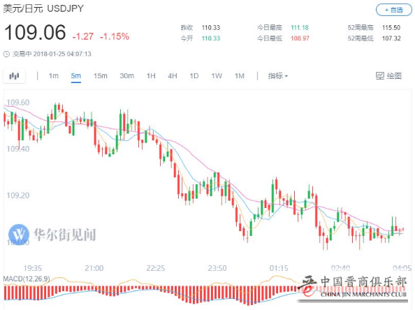 日元兑美元自去年9月11日起首度突破109的关口,涨幅扩大至1.2%或136点,至108.97的四个月新高。离岸人民币兑美元在周三美股早盘突破6.36关口,日内涨幅扩大至近400点;在岸人民币兑美元维持在6.3700。美元兑瑞郎跌破0.95关口,至0.9499的去年9月以来新低,日内跌约0.8%。