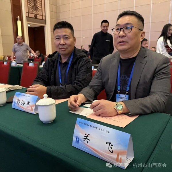 活动首日,杨军会长作为特邀嘉宾出席山西省第三届青年企业家大会。在交流环节中,他动情表示:“离开山西多年,始终关注家乡的转型发展。此次带着杭州企业家‘回家’,既是一次寻根之旅,更是一次发现商机、反哺故土的实践之行。”杭州在数字经济、跨境电商、智能制造等领域的经验,与山西能源革命、文旅融合、信创产业等发展方向高度契合,通过商会平台能够推动两地企业 “优势互补、资源共享”。