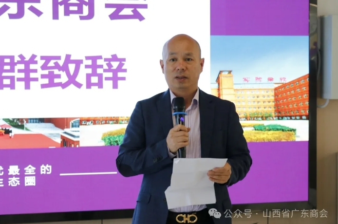 山西省广东商会常务副会长张玮向大家致欢迎辞。他详细地介绍了学校“兼融东西方教育文明,培育全球型未来精英”的办学宗旨,以及近年来学校在教学成果上取得的斐然成绩,用真实的数据阐释着学校雄厚实力。