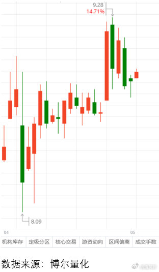 如果「机构库存」数据越活跃,那就意味着参与交易的机构资金越多,机构资金参与的时间也越长。