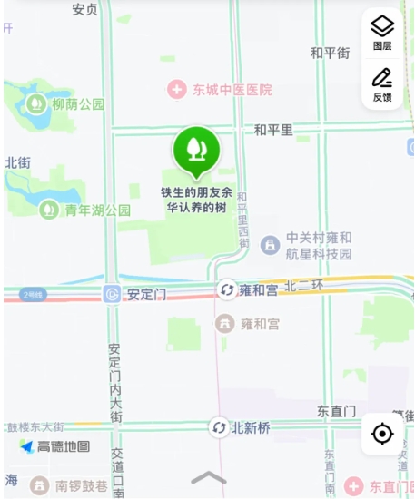 据悉,自从这两棵国槐上了热搜,现在已经成了公园的网红打卡点。在导航地图软件上搜索“铁生的朋友余华认养的树”,直接标注出地址为:东城区和平里中街34号。据了解,这两棵树位于地坛公园北侧。工作人员介绍,这两棵树就是普通游客认养的。工作人员表示,一般人认养树木的时候,吊牌上的名字可以自己取,“只要不违背公序良俗都是可以的”。