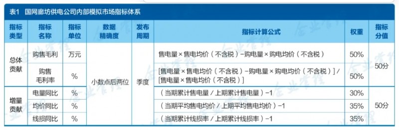 识别关键要素,设置内部模拟考核指标。在成本方面,国网廊坊供电公司按照直接归集和分摊归集的方法将成本分摊至班组。在模拟收入方面,以“内部业务市场化”为导向,在企业内部引入市场价格机制,结合《国家电网公司电网设备检修成本定额》和电网行业造价预算系统,根据各专业工作量计算得出各专业、各班组全年模拟收入。在个人考核与评价方面,设置人均利润贡献率、成本利润率以及外包业务成本占比三个指标,从员工贡献价值、投入产出、人力资源利用效率等方面进行考核评价。