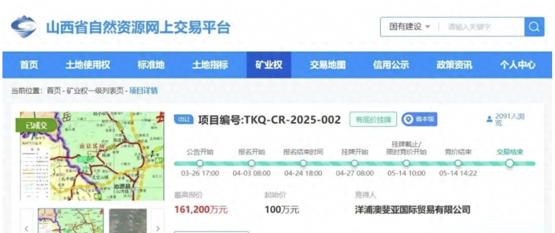 此次山西省今年首次铝土矿探矿权竞拍,成交价格达到了惊人的16.12亿元。