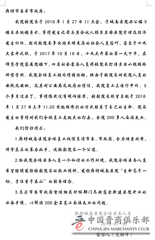 张毅医生跳楼后,廊坊城南医院的200多名医务人员自发组织哀悼张毅院长,并联名上书廊坊市委并市政府。