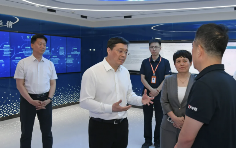 省委常委、市委书记韦韬在中网华信科技股份有限公司调研AI技术在数字化转型领域应用情况。