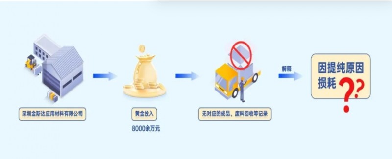 前期,深圳市税务局稽查局通过税收大数据分析发现,深圳金斯达应用材料有限公司研发投入巨大,远超同行业正常水平。对此疑点线索,检查人员比对了企业申报数据、财务资料、进销存数据等,发现该公司在检查所属期内“研发费用——直接材料”科目中有列支金额8000余万元的黄金投入,既没有对应的成品产出,也没有相应的废料回收等记录。