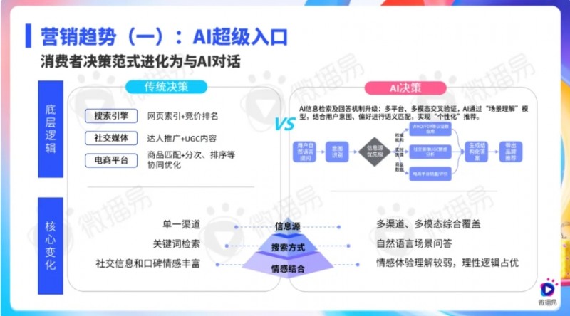 1、AI超级入口:消费者决策转向“与AI对话”,品牌需打造从“被搜索”到“被采纳”的完整品牌路径。
