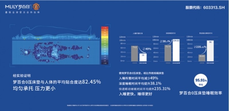 2019年,SCI期刊《Sleep Medicine》发表了由哈佛医学院、北京交通大学、大连维特奥国际医院联合撰写的文章,该文章显示,实验研究表明睡梦百合0压床垫®后,原先睡眠较差人群的深度睡眠时长能够有所提升。梦百合0压薄垫能有效提升睡眠体验,对年轻人而言,这是一场无需付出太高成本、却能快速回血的“睡眠革命”。