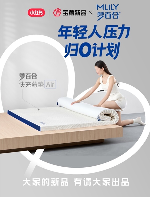 此外,梦百合还联合小红书在上海展开了“年轻人压力归0计划”,并针对年轻人灵活的生活需求,推出了可卷压缩、便携、高性价比的薄床垫产品,从睡眠角度为年轻人提供支持与帮助。