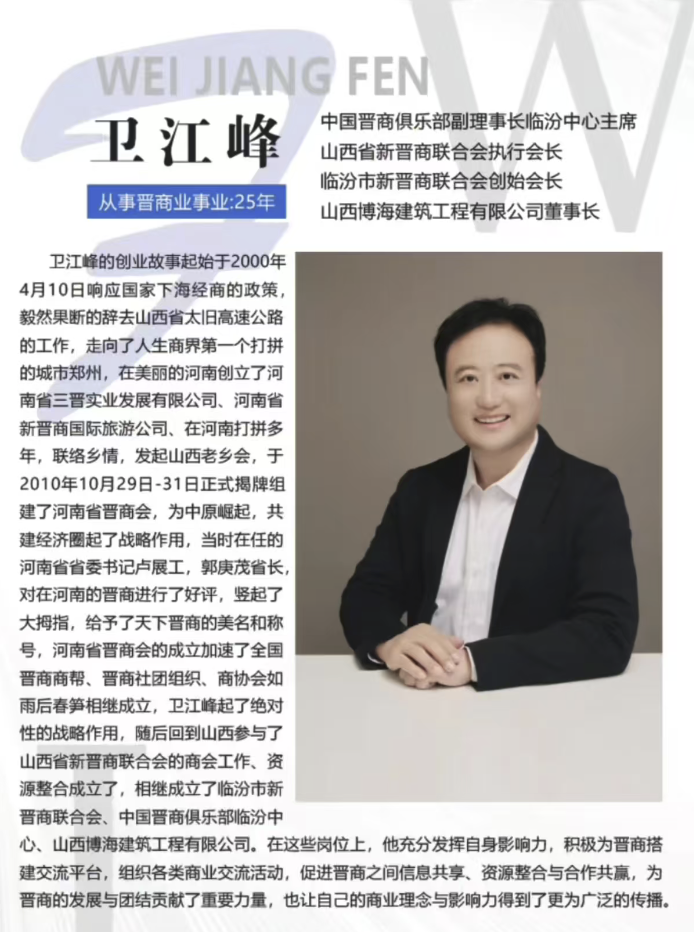 卫江峰 中国晋商俱乐部副理事长兼临汾中心主席、临汾市新晋商联合会创始会长
