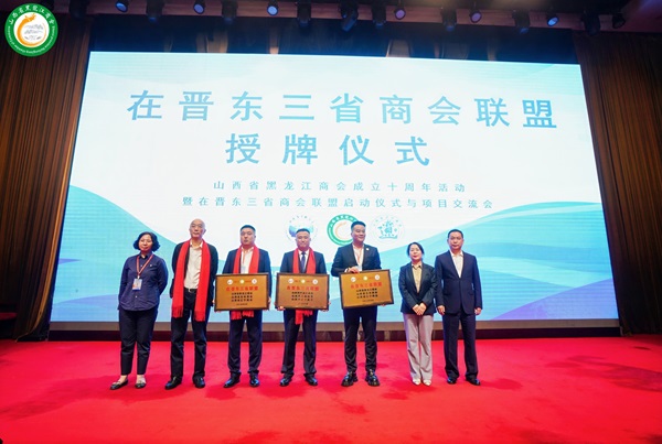 活动重磅环节“在晋东三省商会联盟授牌仪式”正式启动。该联盟由山西黑龙江商会牵头,联合吉林、辽宁在晋商会共同发起,旨在整合三省资源优势,构建信息互通、项目共建、人才联培的合作平台,助力东北振兴与山西高质量发展同频共振。