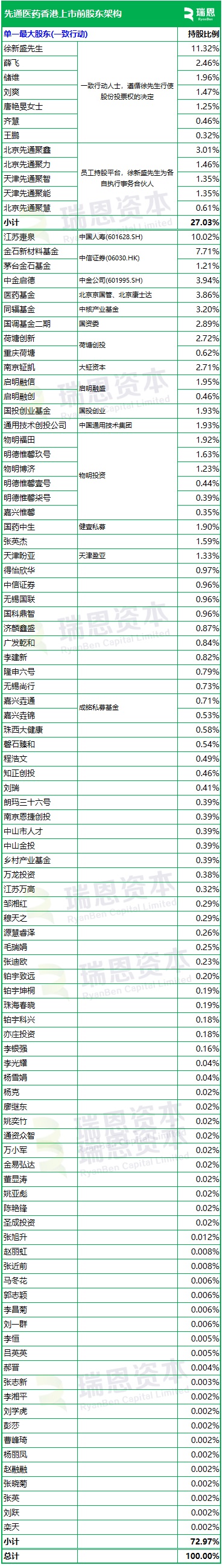 招股书显示,先通医药在香港上市前的股东架构中,