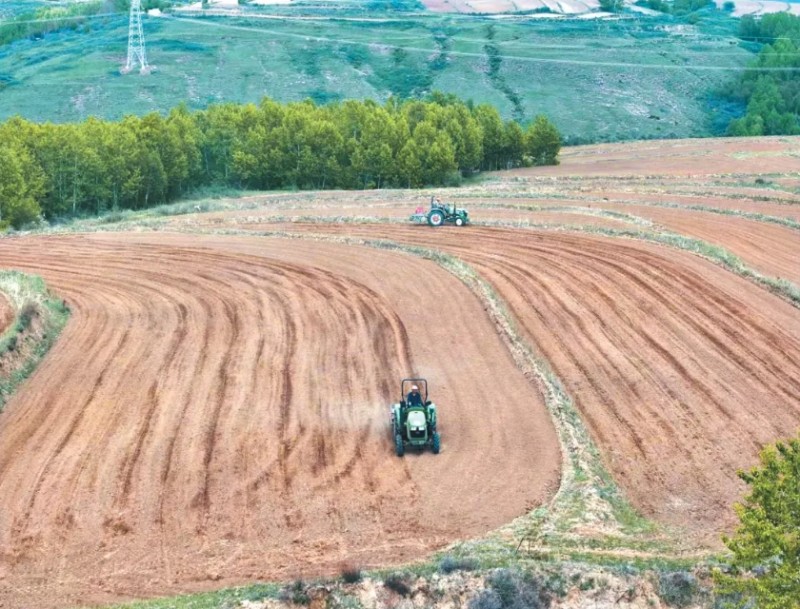 走进宁武县万亩莜麦种植基地,随处可见大型旋耕机、播种机在田畴间有序穿梭。伴随着隆隆机声,坝麦1号、白燕14号等高产、优质、抗病性强的莜麦种子被精准播撒进肥沃的土壤之中,播种机后方留下一道道崭新的垄沟。装载着肥料的农用车紧随其后施肥,为种子的茁壮成长提供充足的养分。