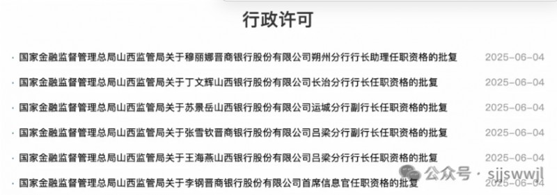 6月4日,国家金融监督管理总局山西监管局发出多则批复,核准了晋商银行、山西银行两大省属城商行6名高管任职资格。