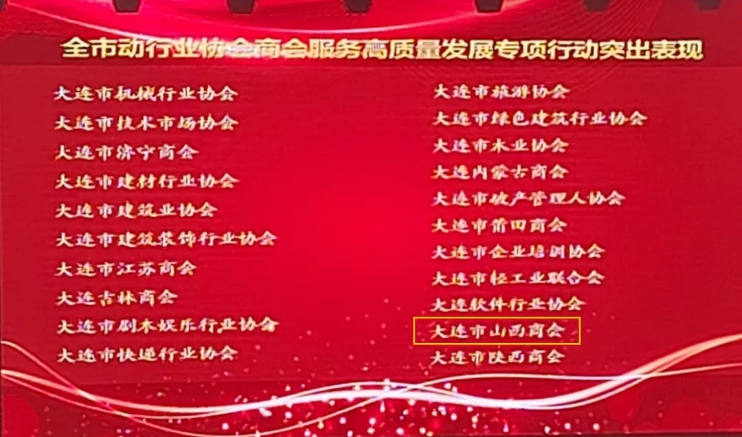 大连市山西商会(晋商俱乐部联合发起机构)在推动全市行业协会商会服务高质量发展专项行动中表现突出,被予以通报表扬!