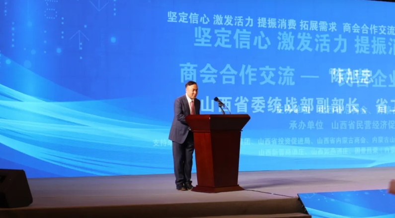 陈旭忠书记在致辞中强调,活动是认真落实中央统战部、全国工商联、省委统战部关于民营企业边疆行的部署要求,促进晋蒙经济协同发展的重要举措。希望通过活动,一是要持续加强两地民营企业的合作交流,共筑高质量发展新路;二是要继续强化商会的纽带作用,激发民营经济的新活力;三是要不断推动晋蒙两地商贸交流,开创合作共赢的新局面。在服务民营企业发展上用心、用情、用力,积极作为、靠前服务,切实解决企业跨区域合作中的问题、难点、堵点。让民营企业家在合作交流中感到暖心、舒心、放心、安心。