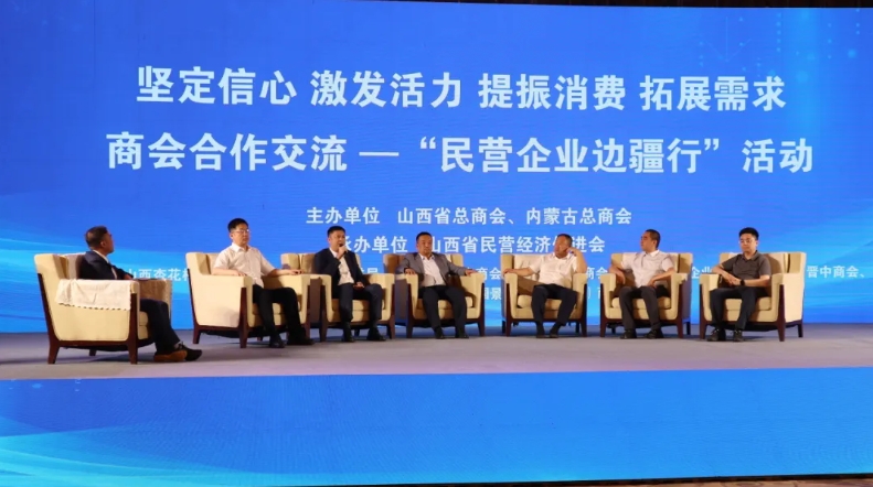 在围绕提振消费、促进晋蒙两地企业融合发展的圆桌交流研讨环节,内蒙伊利集团高级执行总裁刘春喜、大北农集团内蒙古四季春饲料有限公司董事长郑建军、兴泰建设集团有限公司董事长韩平、山西资产管理协会会长魏海生、山西天骄红生物科技有限公司董事长张嘉、山西澳意芦荟生物科技有限公司董事长王国林6名企业家,围绕民营经济发展政策实效、企业产品升级、两地合作优势、《民营经济促进法》实施感受以及企业活力激发等话题,深入剖析当前形势下的机遇与挑战,分享经验见解,展示了民营企业的韧性和智慧,为两地企业合作提供新思路。