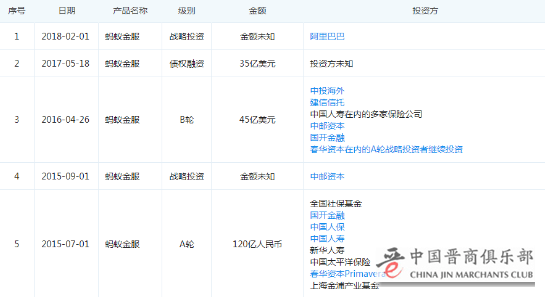 公开信息显示,在阿里巴巴宣布获得蚂蚁金服33%股权以前,后者就已经获得多轮融资,融资总额超百亿美金。