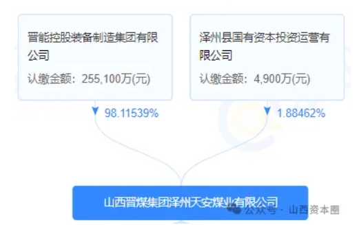 晋煤集团作为晋城矿区的整合主体,于2009年1月与晋城市泽州县政府授权的泽州县泽鑫资产经营有限公司,共同成立晋煤集团泽州天安煤业有限公司,用于整合泽州县范围内的中小型煤矿,成立伊始晋煤集团持股51%、泽鑫公司持股49%。