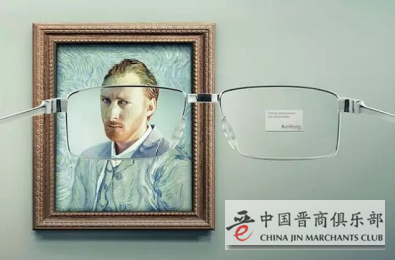 很明显,这个广告主打的卖点是什么?眼镜的清晰度!戴上这个眼镜后,印象主义都变成超写实主义了,服不服?