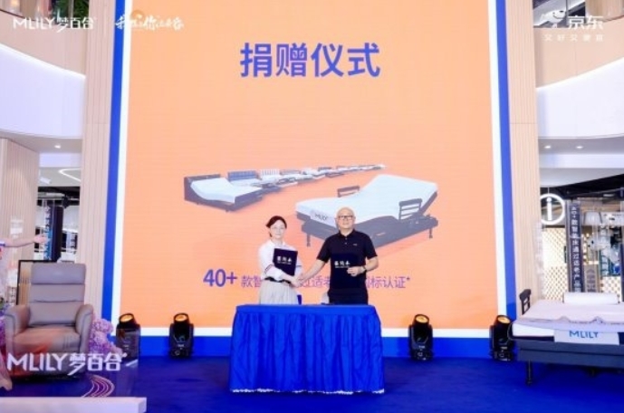 在发布会现场,还举行了一场公益捐赠仪式,MLILY梦百合向南京本地悦华安养院捐赠睡眠产品,以行动助力“老有安眠”。