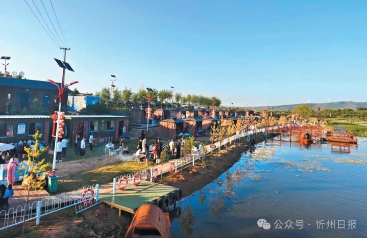 盛夏时节,宁武县余庄乡马营村的鸭子海畔,一处文旅休闲基地吸引着当地市民和周边游客纷至沓来,在青山绿水间乐享夏日的惬意时光。