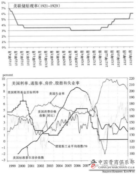 两次危机前的产业神话和收入分配出现的巨大差距,改变其社会地位的急切心情,使大众都开始追求一夜暴富,在宽松货币环境和以提高杠杆率为实质的金融创新助推下,大量举债进行高风险投机,产生了巨大的资产泡沫,大萧条前主要是股市泡沫,这次危机前是房地产泡沫。
