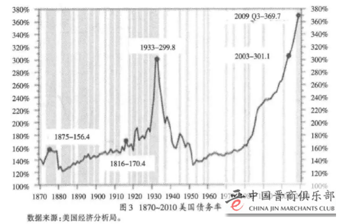 图3:1870-2010美国债务率 数据来源:美国经济分析局
