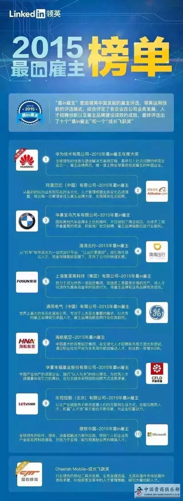 “最in雇主”是由领英中国发起的雇主评选,从多个侧面反映一家企业在人才战略方面的前瞻性和洞察性。它运用创新的评选模式,综合对比了当今中国各企业在公司业务发展、人才招聘创新以及雇主品牌建设方面的成就,最终评选出十大“最in雇主”及一个“成长飞跃奖”。