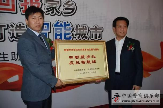 当时的阳泉市市长李栋梁亲自接受了捐赠,并回赠了“明朝望乡处,应见智能城”的牌匾。后来,心系家乡的李彦宏还以全国政协委员的身份,提出要取消WiFi个人身份认证的提案,再度降低上网门槛。