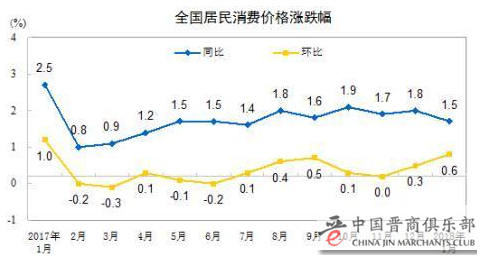CPI涨幅走势。来自国家统计局