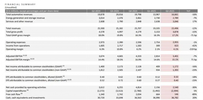 7月24日|在汽车销量持续下滑的情况下,特斯拉的净利润进一步下滑,第二季度净利润下跌16%至11.72亿美元。在汽车销量同比下降13.5%之后,该公司第二季度营收同比下降12%至225亿美元,略低于市场预期,同期汽车业务收入下降16%。能源业务收入下跌7%。特斯拉表示,其营收和盈利能力的下降是由于销量下降和监管信用积分的减少。特斯拉的股价在周三盘后交易中小幅波动。