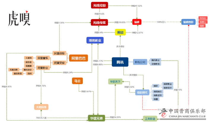 猫眼与娱票儿合并后, 腾讯、阿里的电影产业部分布局及与传统影视公司的资本关系