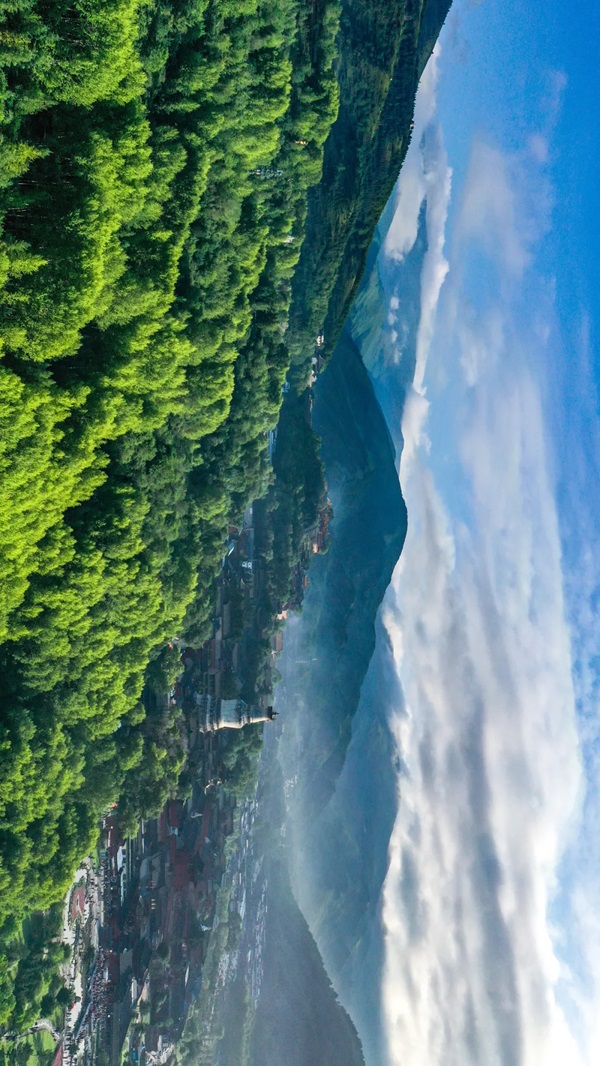 五台山的晨钟穿透云雾,将北台叶斗峰的积雪染成金色。这五朵青莲般的峰峦,曾是李白笔下“举手可近月”的仙境,是徐霞客眼中“翠霭浮空”的丹青。佛光寺东大殿的唐风鸱吻,衔着盛世的余晖;显通寺的铜殿金顶,映照着一众佛教信徒虔诚的身影。五台山的灵性,是晨昏交替时檐角铜铃的震颤,更是古今智者跨越时空的对话。