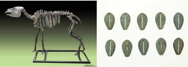 (左图:三趾马动物化石;右图:保德铜贝。资料图)