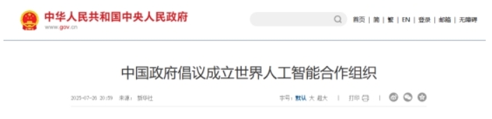 新华社上海7月26日电(记者 王慧慧、马卓言)中国政府26日倡议成立世界人工智能合作组织,初步考虑总部设在上海。