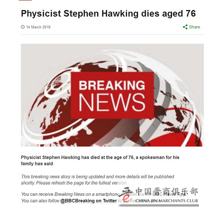 据悉,他的家人已经确认,霍金教授的子女露西、罗伯特和蒂姆在一份声明中表示:“我们深爱的父亲已于今日辞世,我们为此感到极度伤心。他是一名伟大的科学家,一个卓越的人,他的工作成功将会在未来许多年继续存在下去。他的勇气和坚持以及他的天才与幽默鼓舞了来自世界各地的人。他曾经说过: ‘如果不能为你所爱的人提供一个家,宇宙就没有什么意义了。’ 我们将会永远怀念他。”