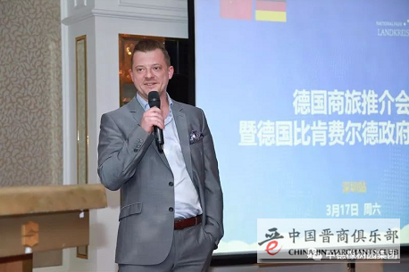 随后来自德国莱法州比肯费尔德经济促进局局长Michael Dietz先生对近年来中德两国之间关系的发展、中德两国企业商贸合作表示全力支持。希望在2018“中欧旅游年”,将进一步加强中德两国之间企业商贸合作及旅游文化交流。众所周知,越来越多的中国投资者已率先抢占欧洲市场。2017年中国在德并购额创新高,其中规模最大的是李嘉诚的长江实业集团以67亿美元并购德国能源服务商ista(第三),其次分别为海航集团成为德意志银行最大股东,以及尚有待美国审查的中国科瑞集团收购德国Biotest公司。对于中资在德国再创新高的并购规模,德国莱法州比肯费尔德政府表示热烈欢迎,希望更多的中国投资者来此定居创业。