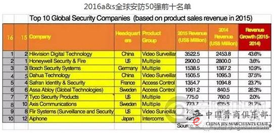 2001年,中国成立了一家叫海康威视的企业,仅仅6年后的2007年,这家中国企业就进入了a&s评选的全球安防50强。记住2007年,海康威视才刚刚进入世界前50,那么到八年后的2015年,海康进步到什么水平了?