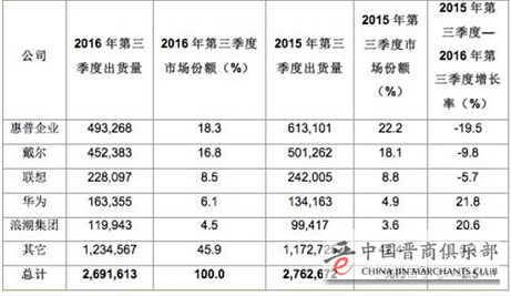 再比如服务器,2016年Q3全球出货前五惠普,戴尔,联系,华为,浪潮,都是中美企业,日本和德国都没有。