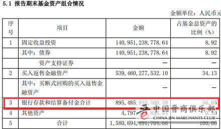 我们还以余额宝的天弘基金为例,据其2017年4季度报告显示,天弘基金56.65%的资金又以银行存款和结算备付金的方式放在了银行。