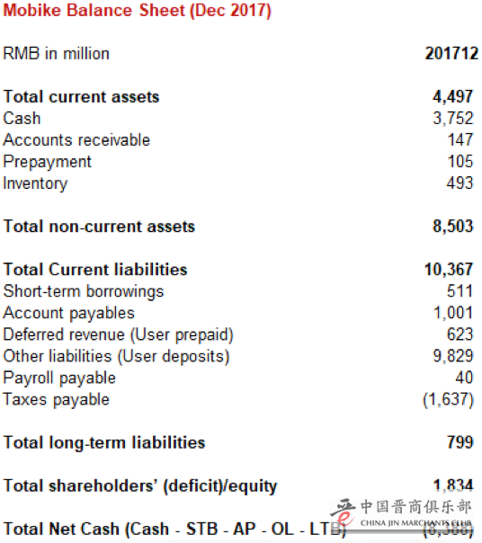 摩拜内部的财务报表显示,截至当前摩拜挪用用户押金60亿元人民币,供应商欠款约10亿人民币,债务总额合计超过10亿美元。除去债务(用户押金及供应商欠款),摩拜的实际出售价格为27亿美元,低于其上一轮融资34.5亿美元的估值。