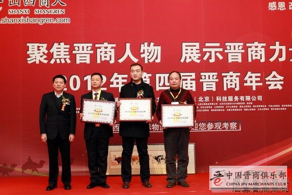 在大会现场,晋商年会组委会发布了2012年10大优秀晋商品牌,10大晋商品牌为:碧生源、阳光牌存包柜、神药集团、大运集团、天生红枣酒、建川博物馆、亿星之光、诚迈科技、鱼羊包、圣源地毯。