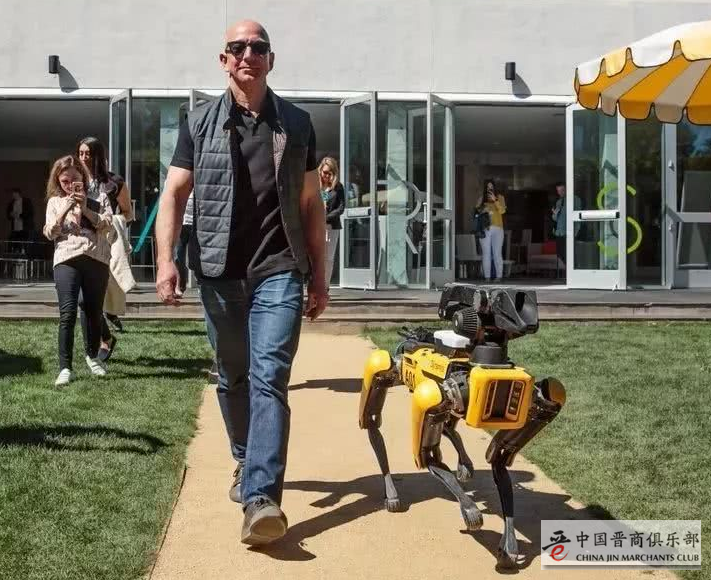 在被特朗普开炮之前,贝索斯曾在3月的一条推特上发布照片,昂首阔步,身旁跟着一只机器狗。