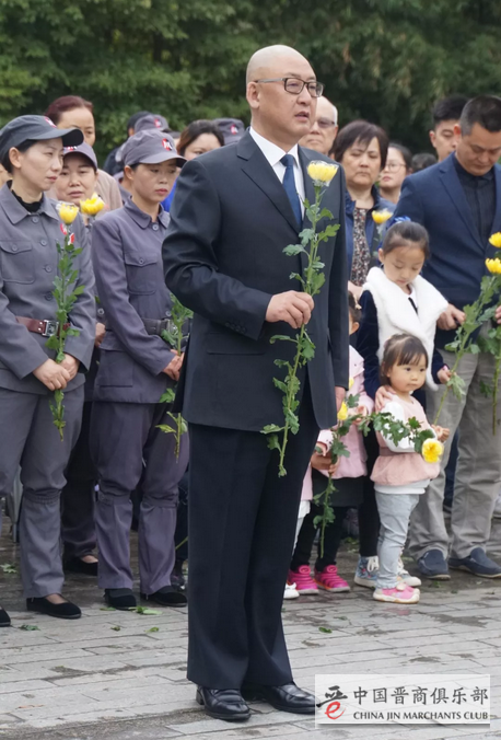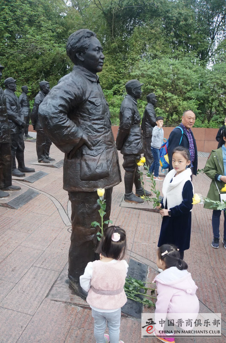 默念完毕。人们纷纷走向壮士群雕中,一人,一花,一酒,秩序井然。他们把鲜花献予自己最爱戴的英雄,将美酒敬给自己最崇敬的壮士。